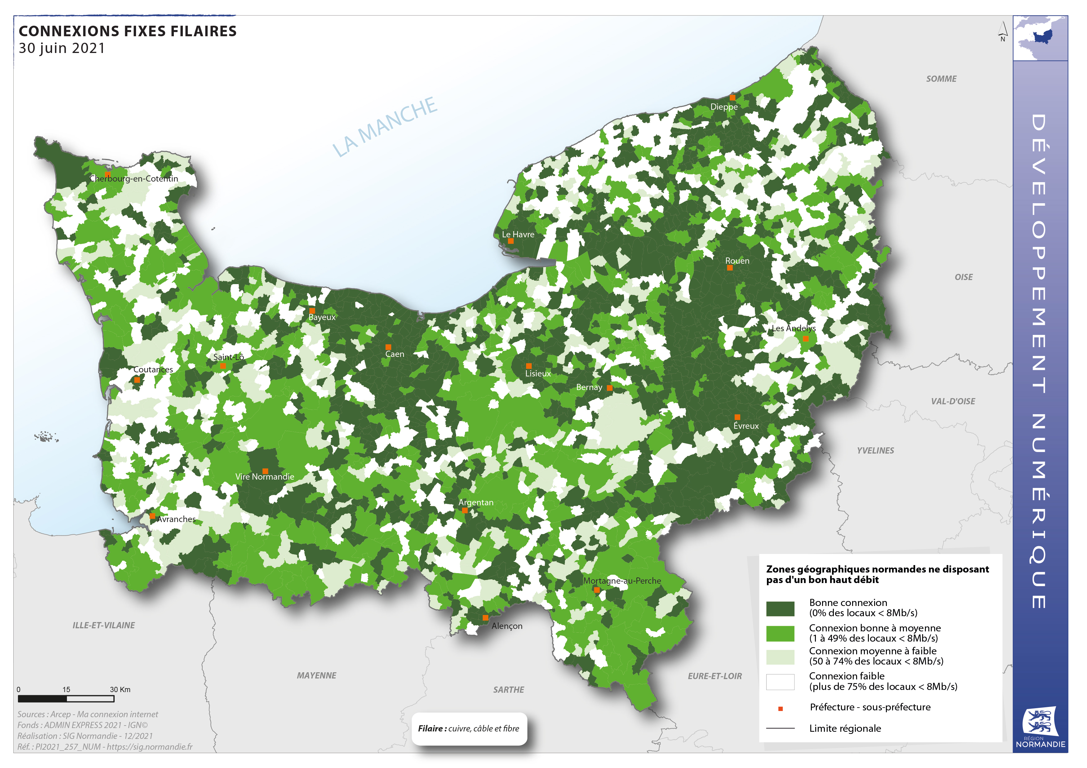 Si vous utilisez cette carte dans une publication ou dans une présentation, merci de respecter son intégrité et de mentionner les crédits : Réalisation : SIG Normandie -12/2021 Sources : Arcep - Ma connexion internet Fonds : ADMIN EXPRESS 2021- IGN©