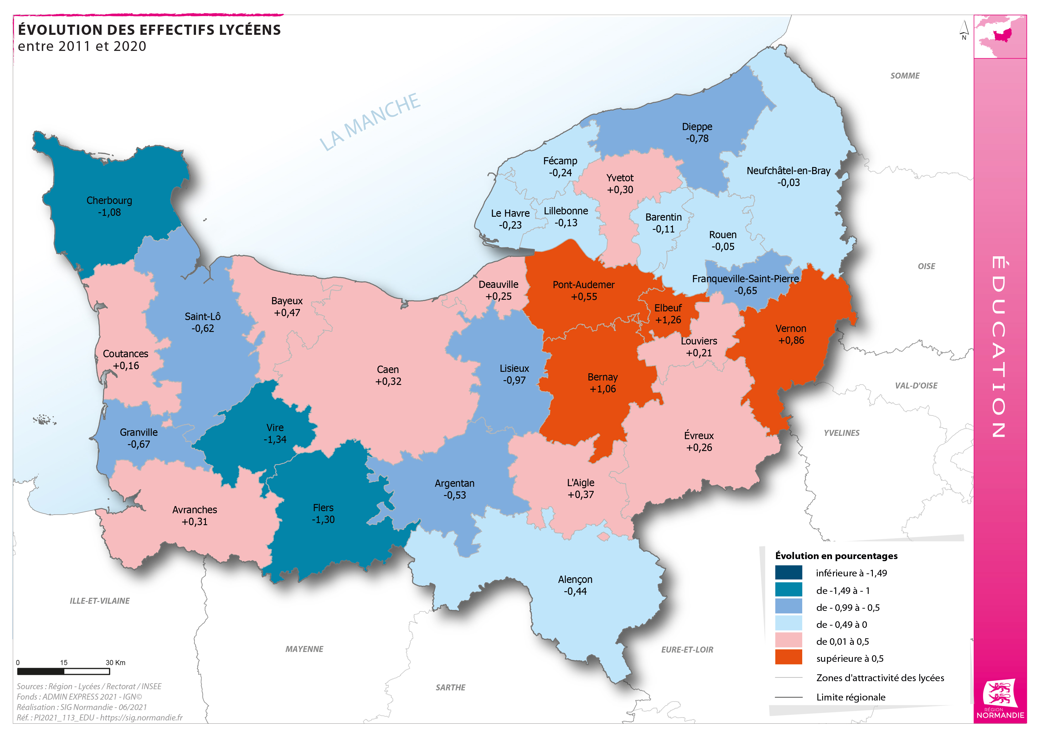 Retrouvez ici l'évolution des effectifs lycéens entre 2011 et 2020 par établissement public de coopération intercommunale (EPCI) de rattachement d'un ou plusieurs lycées. Cette carte s'inscrit dans le cadre d'une étude de de prospective démographique.