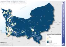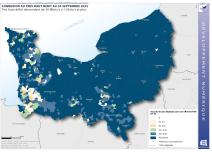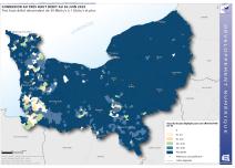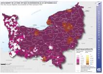 Déploiement de la fibre optique en Normandie au 30 septembre 2024 - Part des locaux éligibles raccordables en fibre optique (FttH)
