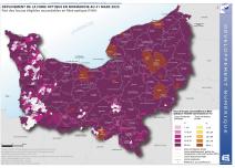 Déploiement de la fibre optique en Normandie au 31 décembre 2024 - Part des locaux éligibles raccordables en fibre optique (FttH)